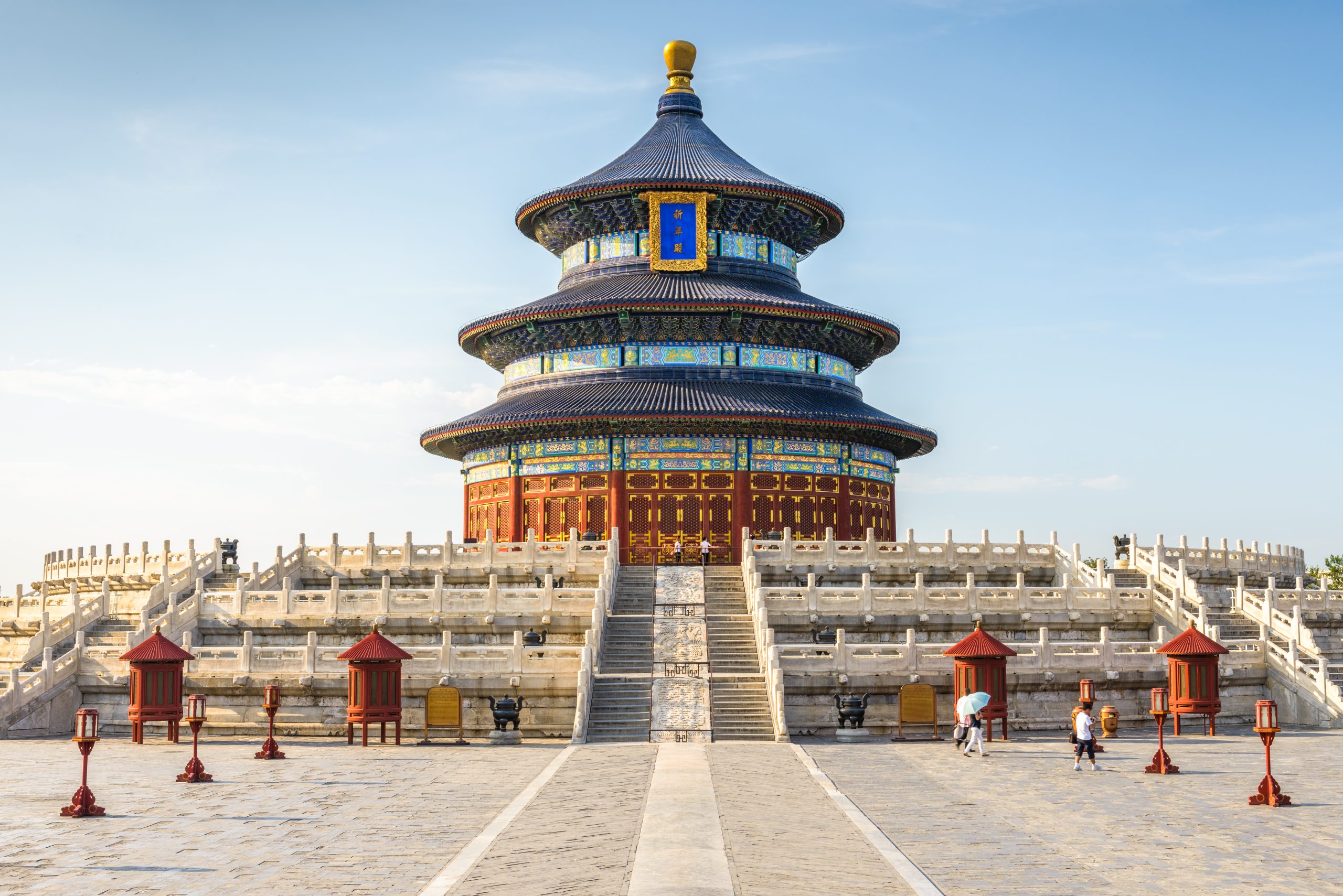 Desayuno en el hotel. Visita a la ciudad incluyendo la Plaza de Tian An Men, la Ciudad Prohibida y el Templo del Cielo. Almuerzo con pato laqueado. Visita también del famoso Mercado de la seda. Noche en Pekín.